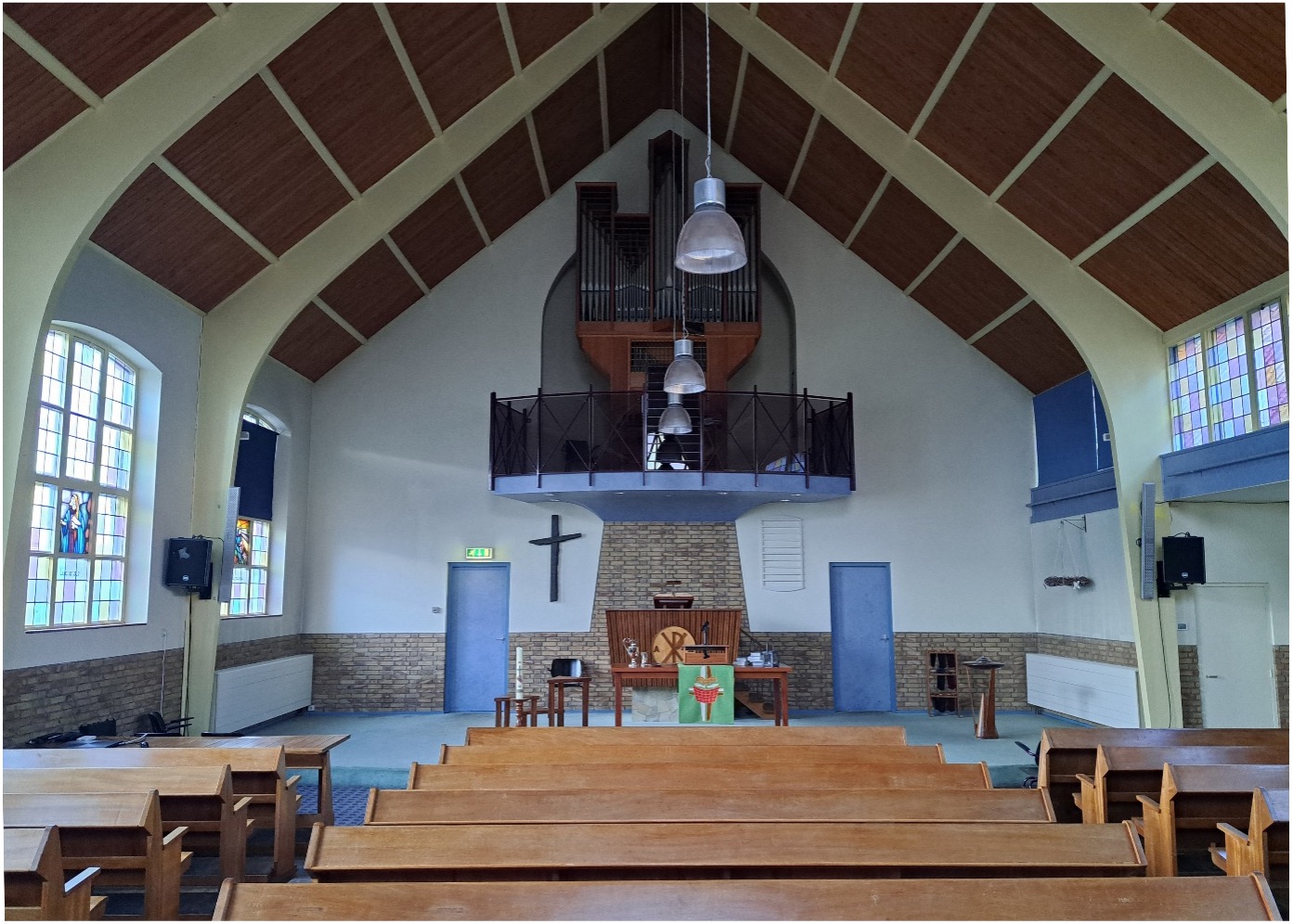 De eerste steen van het nieuwe kerkgebouw werd gelegd in mei 1960 door de toenmalige predikant, ds. Lensink. Deze gedenksteen is nog steeds te zien in de hal van de kerk en vormt een blijvende herinnering aan het begin van een nieuw hoofdstuk in de geschiedenis van de gemeente.